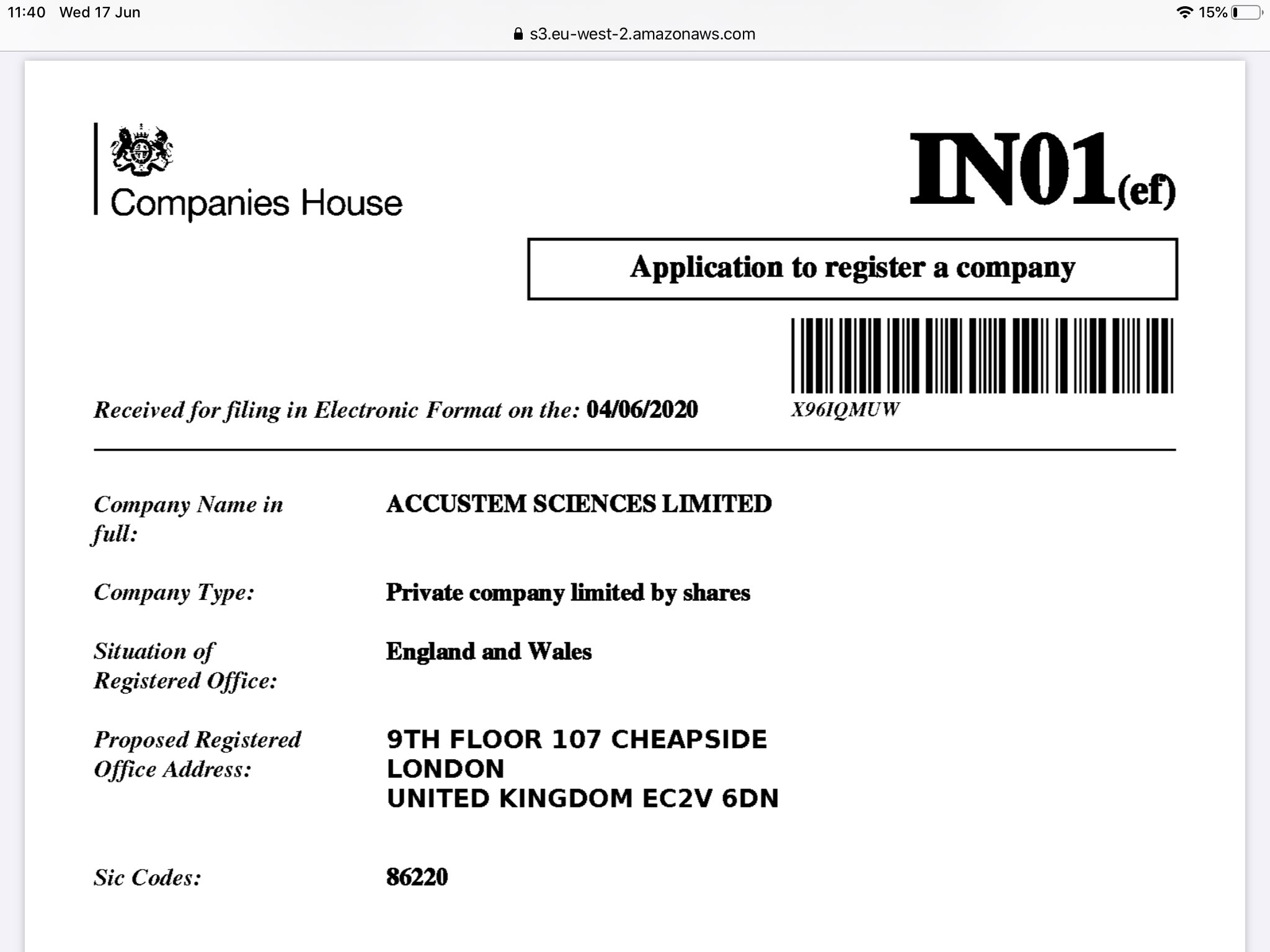 The incorporation date is april 21 2020.