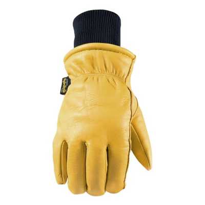 Winter lined golden eagle mechanics glove with deerskin palm and knit back.